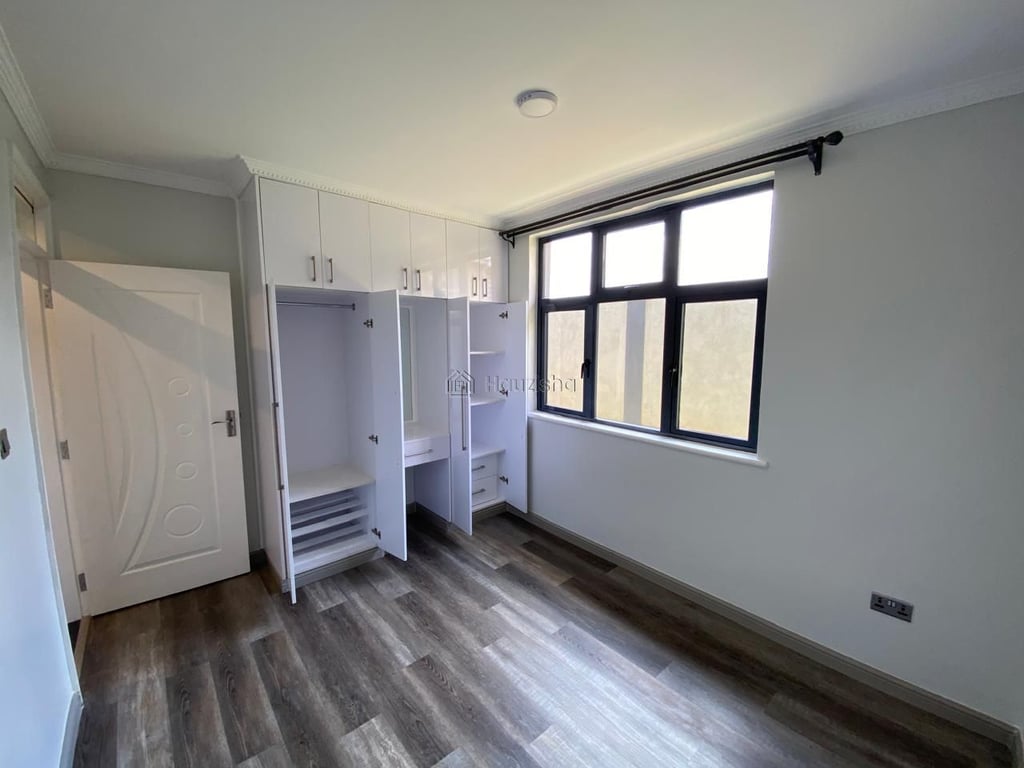 large windows -Fitted kitchen cabinets~Separate laundry area-Bedroom wardrobes-Fitted washroom-Big balconyAmenities:~Gated estate ~Kids play area~Backup Borehole Water ~CCTV Surveillance ~Serene environment ~Near Tarmac