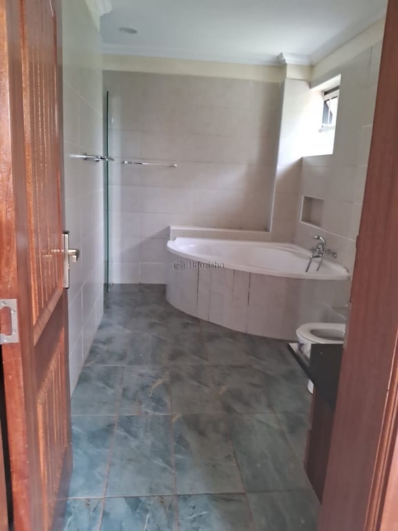 4 bedroom bungalow house all ensuite bathrooms and guest toilet. Open kitchen. Detached dsq with two rooms, separate shower and toilet. Master bedroom includes walk-in closet, corner bathtub and shower. Large front lawn. Service charge covers yard maintenance, and trash collection. Ample water pumped on site.