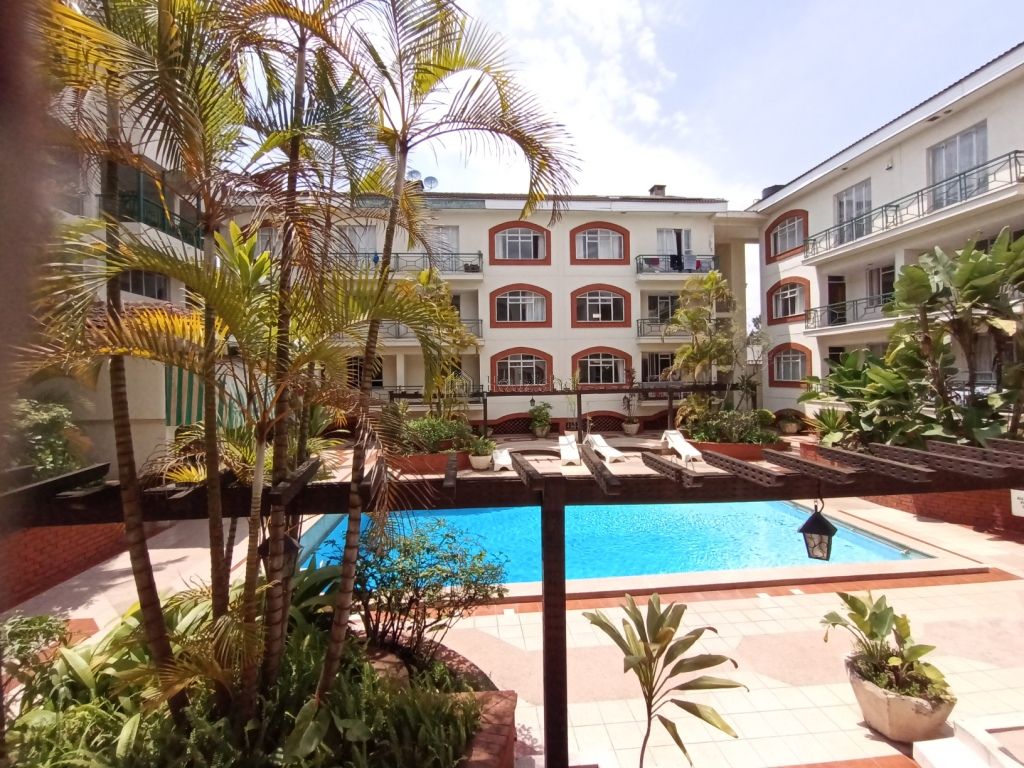 This spacious and tastefully furnished apartment complex is in one of the best positions along Forest road with beautiful views.This spacious and tastefully furnished apartment complex is in one of the best positions along Forest road with beautiful views.There are one bedrooms with a large sitting room and dining room which has doors leading out to a covered entertainment area; Kitchen is fully equipped with a cooker and refrigerator.The premises are also equipped with a backup generator and water reservoir tanks. TV channels offered include DSTV family package and other local channels.On site facilities includes a swimming pool, Gym, steam and sauna