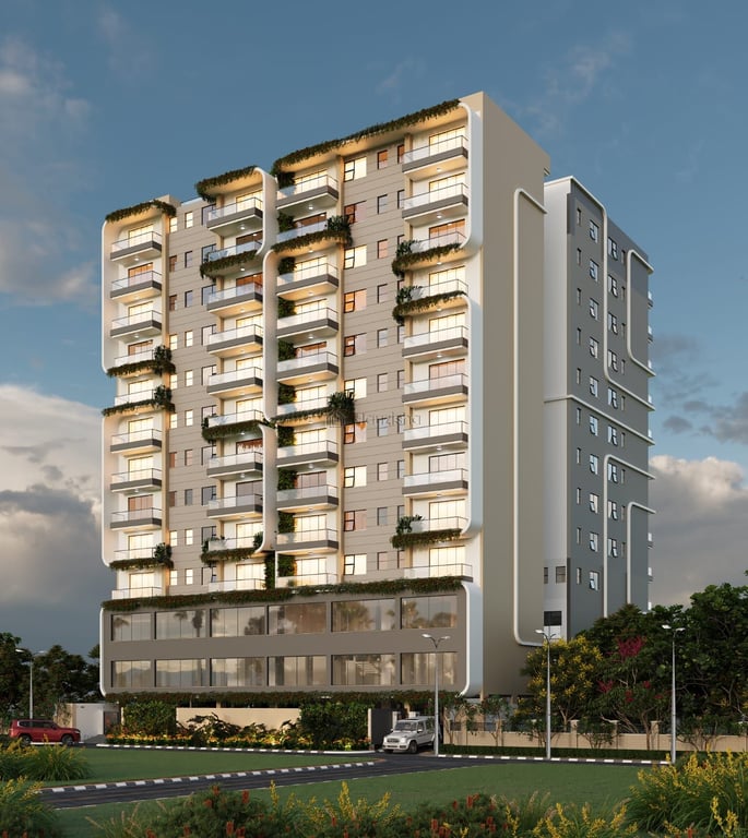Tastefully designed apartment complex under construction.