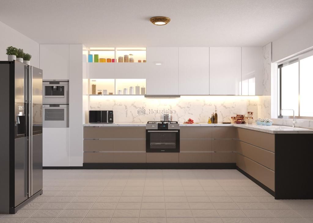 Open plan well fitted kitchen and dhobi area.