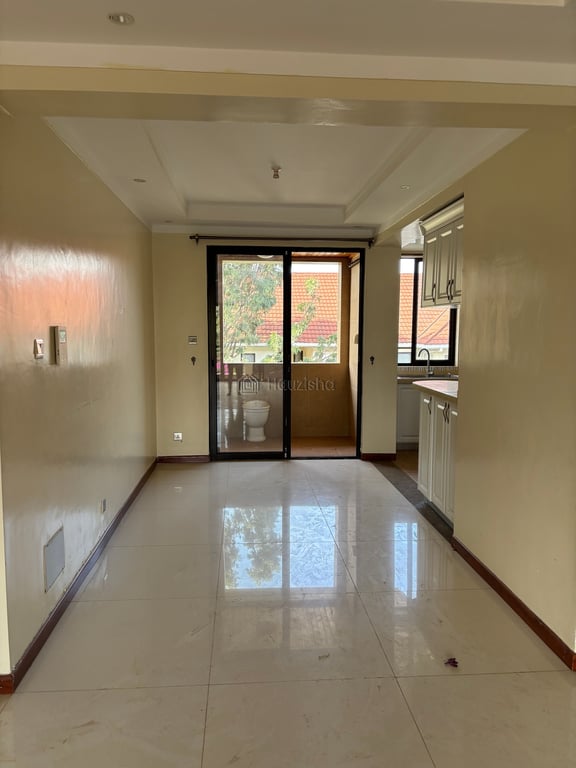 Size:About 105-110m2-2bedroom (master bedroom en-suite with bath tub and walk -in wardrobe )-2 bathroom (one shared)-Spacious living and dining area -Open- flat fitted kitchen Estate Amenities .Gated with 24/7 security .Well -manicured lawns ,landscape paths ,abundant indigenous tree .Reliable municipal water supply and borehole backup.Ample parking space Condition Modern finishes :pop ceiling ,tilled floors ,kitchen cabinets,pre -paid meters,hot water system .